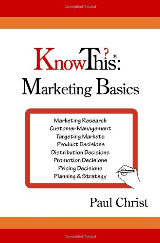 KnowThis: Marketing Basics offers detailed coverage of essential marketing concepts. This very affordable book is written by a marketing professor and covers the same ground as much more expensive books while offering its own unique insights. The book takes a highly applied approach including offering over 100 real-world examples and is ideal for marketing professionals, students and anyone else who needs to know about marketing. Supported by KnowThis.com, a leading marketing resource. Contents: 1: What is Marketing? 2: Marketing Research 3: Managing Customers 4: Understanding Customers 5: Targeting Markets 6: Product Decisions 7: Managing Products 8: Distribution Decisions 9: Retailing 10: Wholesaling & Product Movement 11: Promotion Decisions 12: Advertising 13: Managing the Advertising Campaign 14: Sales Promotion 15: Public Relations 16: Personal Selling 17: Pricing Decisions 18: Setting Price 19: Managing External Forces 20: Marketing Planning & StrategyAvailable at Amazon